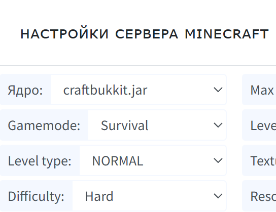 В настройках сервера на сайте выставлена сложность "Hard" в самом мире почему-то стоит "Лёгкая".