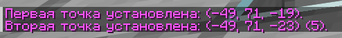 После каждой отметки в чате появляется подтверждение с координатами. Важно: отмечать нужно именно топором, который вы получили через //wand. Обычным топором это не работает.