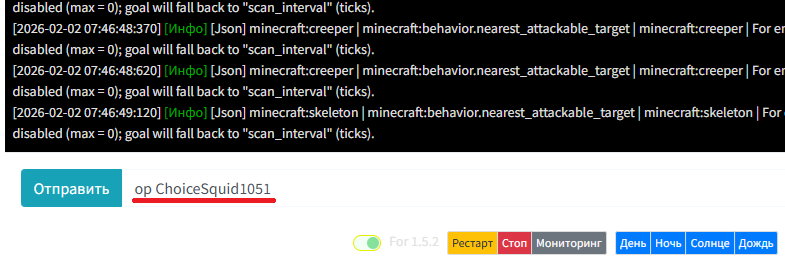 Алексей 2 февраля 2026 - 10:48 В игру на сервер войдите и пропишите в консоль: op ChoiceSquid1051 В игру на сервер войдите и пропишите в консоль: [b]op ChoiceSquid1051[/b] [img]/kartinki/forum/5537617700184719842.png[/img] Отправить Загрузить изображение